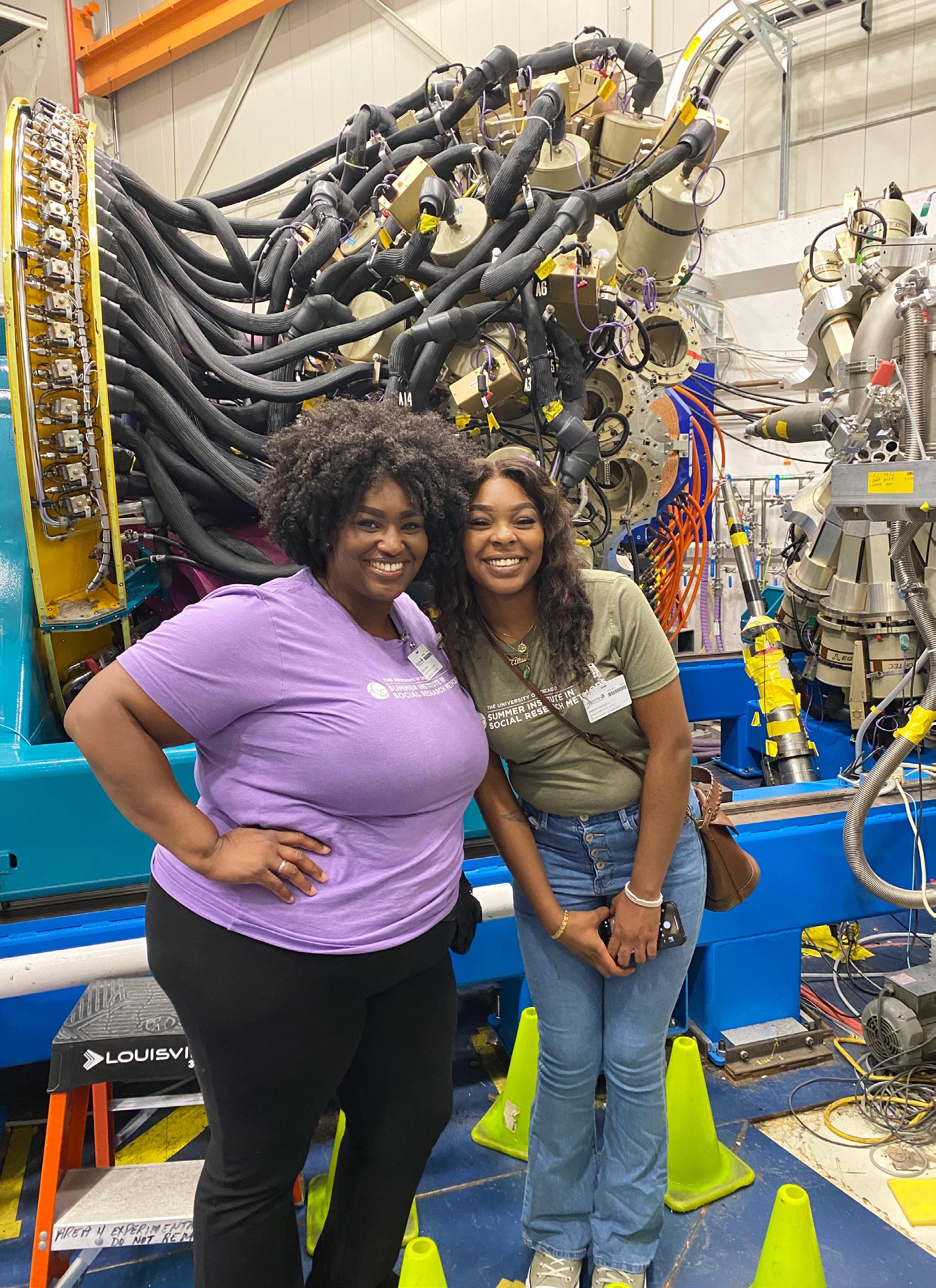 CSU-SISRM Fellows Robii F. and Ally B. pose in front of the Gammasphere at Argonne National Laboratory