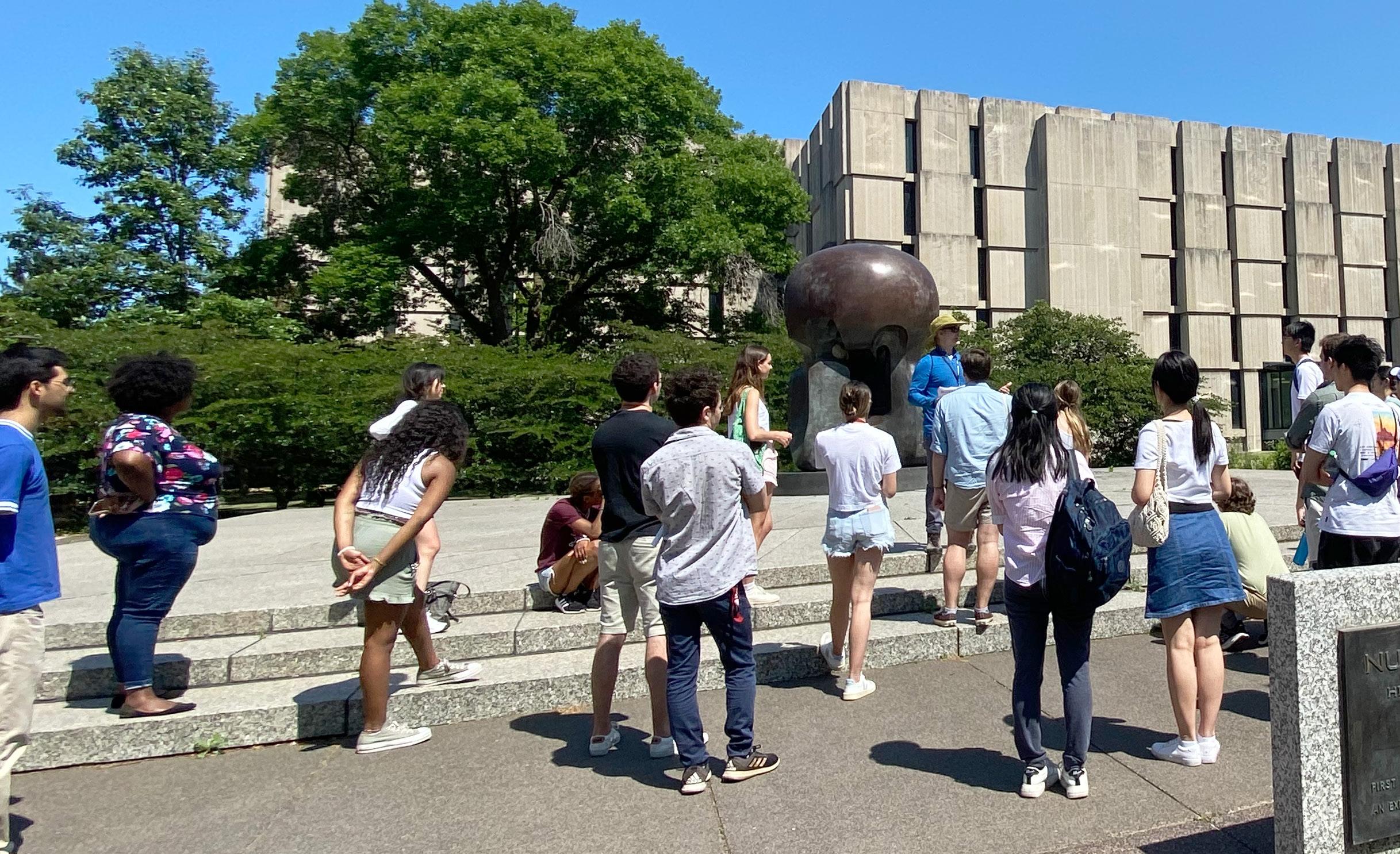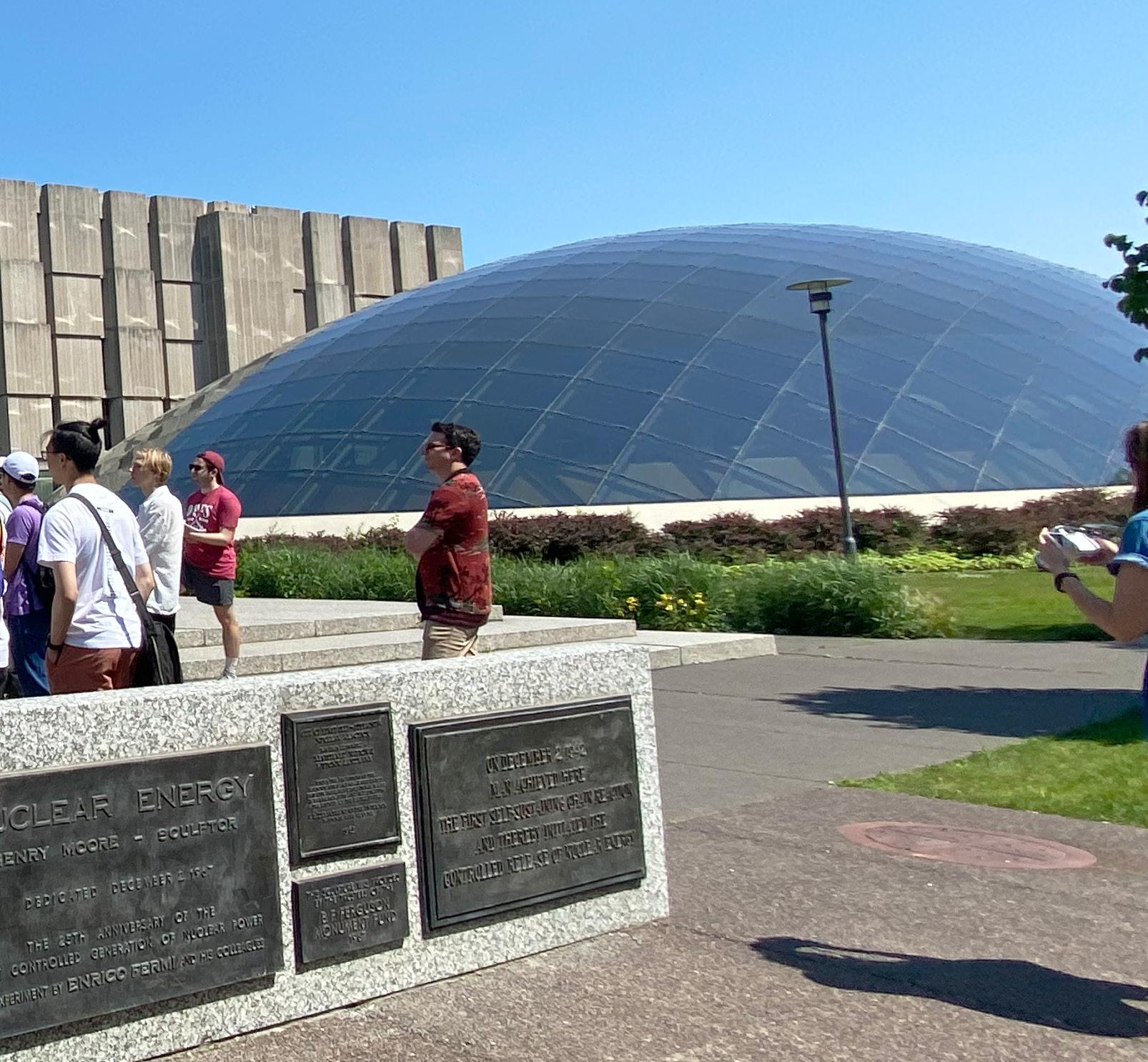 SISRM Director Paul Poast and SISRM fellows at the Nuclear Energy sculpture during a stop on the American Century tour.