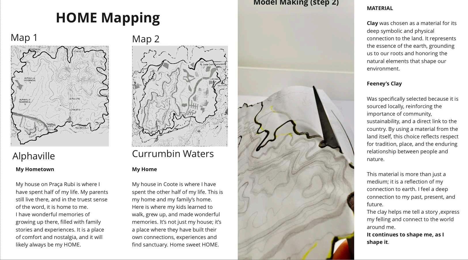 Through my living artwork, I fuse the geographic and emotional landscapes of two locations—Alphaville, São Paulo, Brazil, and Currumbin Waters, Queensland, Australia —into a utopian topography. Each layer embodies the passage of time, capturing moments, memories, history, and emotion, with imprints of the land’s gifts telling a story.