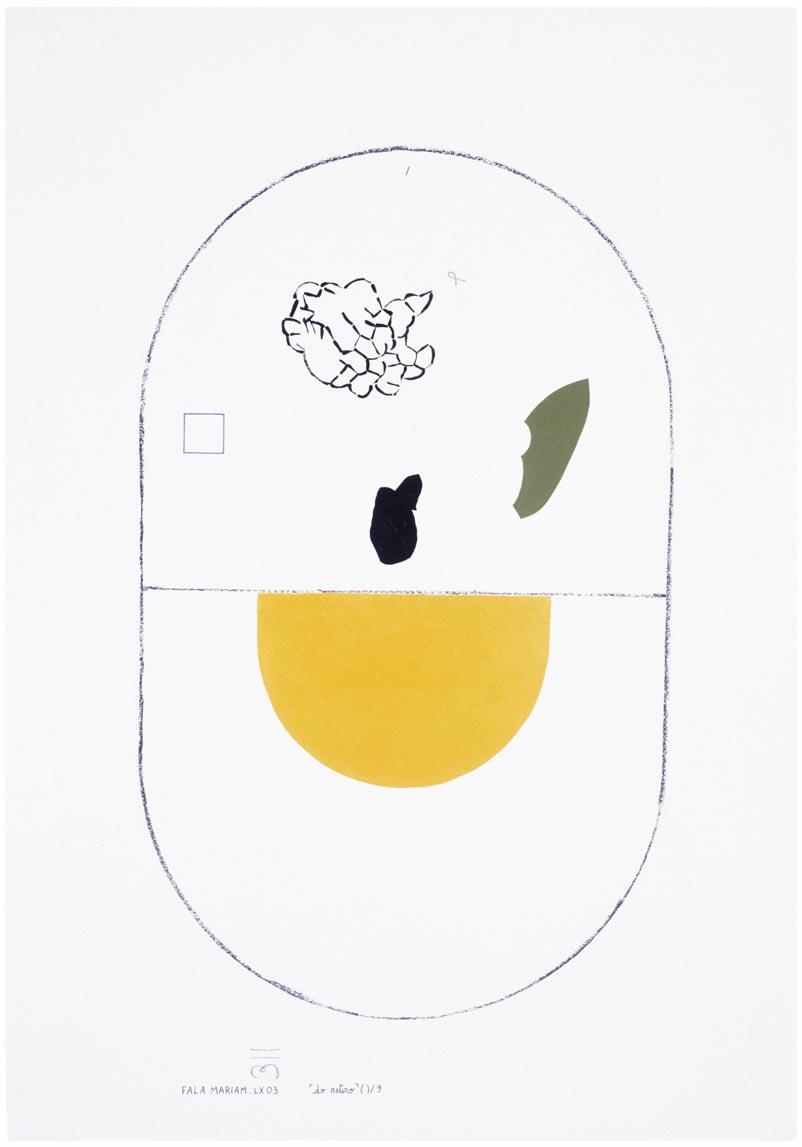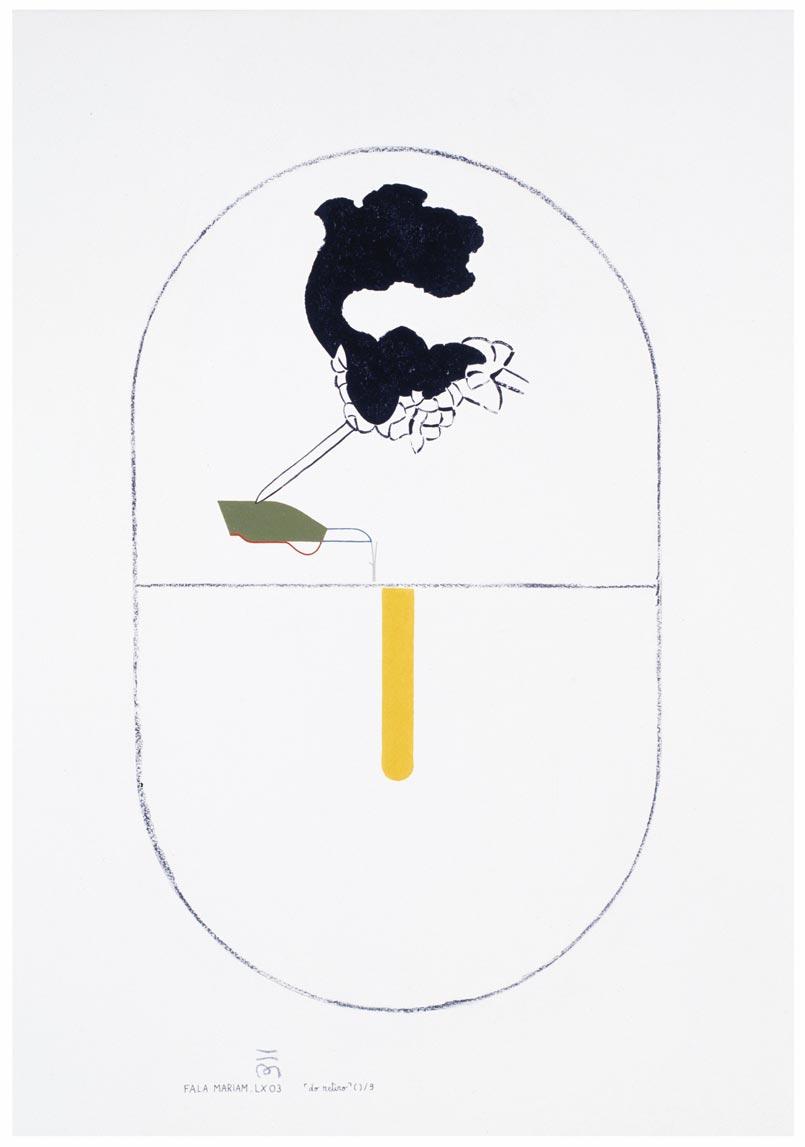 A pintura de Fala Mariam não seria possível sem a invenção do microscópio e do telescópio. Da visão vertiginosamente próxima e longínqua. Um milímetro de tela ou de papel pode corresponder a um milésimo de segundo ou a um ano-luz. Aí, o nosso olhar muda, constantemente, de escala: os olhos vagueiam, sem referencial fixo, pelo espaço infindo e pelos interstícios da matéria. Como se o estranho balão de Odilon Redon tivesse, enfim, cumprido o seu destino: ser o olhar de uma pintora.