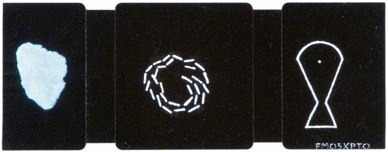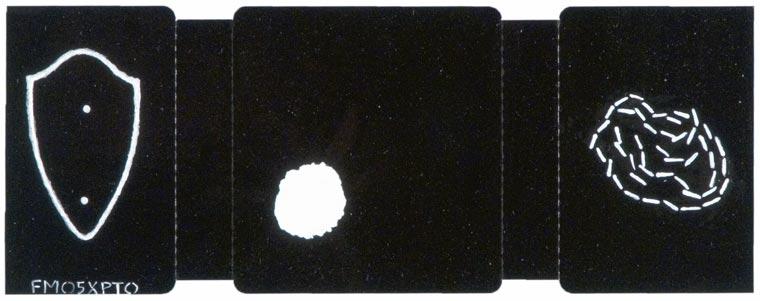 — figura a própria potência de figurar (Figs. - ). Diagrama materno: novelo, casulo, cápsula, célula, meteorito, nuvem… Simples projecção que voga pelo oceano nocturno do acaso e da necessidade. (À semelhança dos caldeus, dos babilónios e dos sumérios que, observando os céus, projectaram as primeiras constelações — as primeiras figurações abstractas feitas à luz nocturna.)