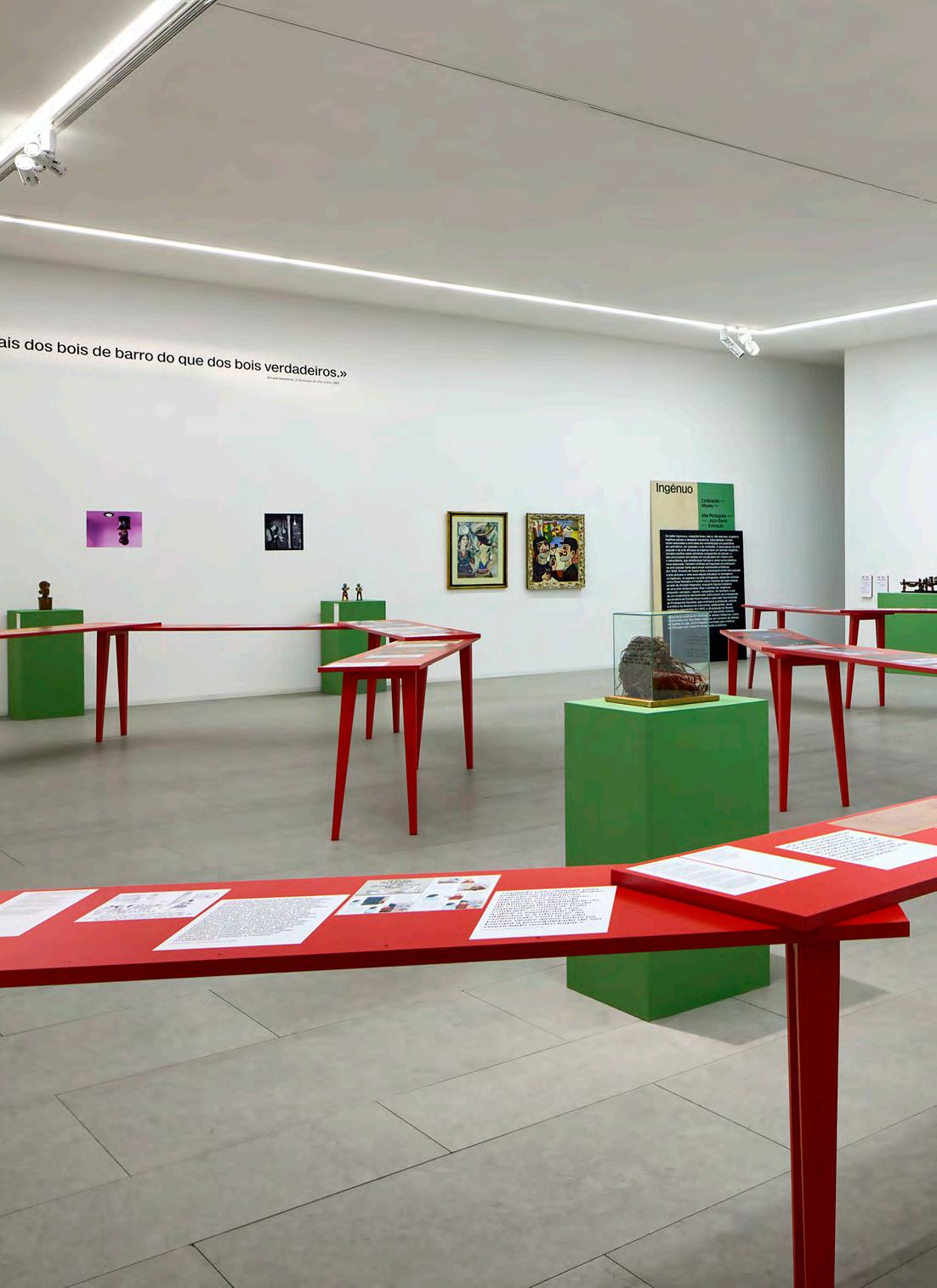4 Um caminho já longo de trabalho relativo a este assunto, da Marta Mestre e meu, trouxe-nos a es ta exposição. Da minha parte, estudei este tema desde 2003 sobretudo a partir dos artistas Ernesto de Sousa, Eduardo Batarda e Almada Negreiros. O tema teve outro fôlego no contexto do projecto financiado com fundos europeus coordenado por Joana Cunha Leal e do qual fui co-coordenadora Modernismos Ibéricos e o Imaginário Primitivista (2018-2022) no Instituto de História da Arte da Faculdade de Ciências Sociais e Humanas da Universidade Nova de Lisboa. Nesse âmbito desenvolvi trabalho concreto sobre a relação colonialismo/ primitivismo para o contexto português. Agradeço a toda a equipa do projecto as discussões e a possibilidade de comparar diferentes investigações em torno do termo «primitivismo» o que possibilitou novas perspectivas e caminhos de reflexão. Ver J.C. Leal e M.P. dos Santos (ed.), The Primitivist Imaginary in Iberian and Transatlantic Modernisms, Routledge / Taylor & Francis, 2024 (Open Access). Os trabalhos ao longo de anos dos/as autores/as convidados/ as a escrever pequenos verbetes para esta exposição e catálogo, bem como vários/as autores/as citados/as, foram também fulcrais para pensar esta exposição. O longo trabalho de curadoria da Marta Mestre e o exemplo recente da sua reestruturação do CIAJG foi também precursor da exposição que apresentamos juntas.