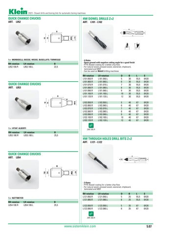 - 2-flutes - PTFE-Based coating for a better chip flow - For natural wood, pressed wood, veenered, chipboard, laminated and MDF