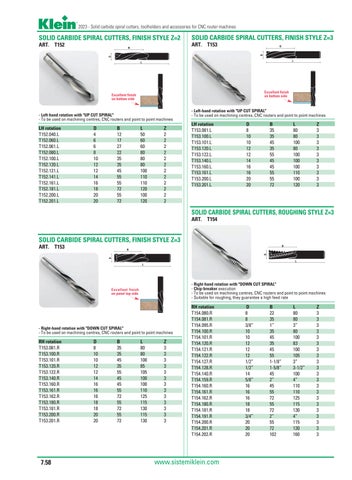 - Left-hand rotation with "UP CUT SPIRAL" - To be used on machining centres, CNC routers and point to point machines