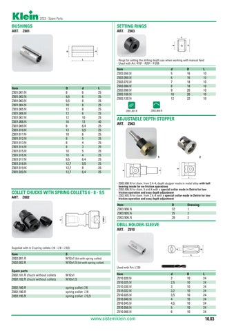 - Rings for setting the drilling depth use when working with manual feed - Used with Art. R101 - R201 - R 205