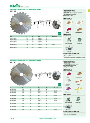 USEFUL INFORMATION • Fine cut HW sawblades • Pin holes: PH02=2/7/42 + 2/9,5/46,5 + 2/10/60