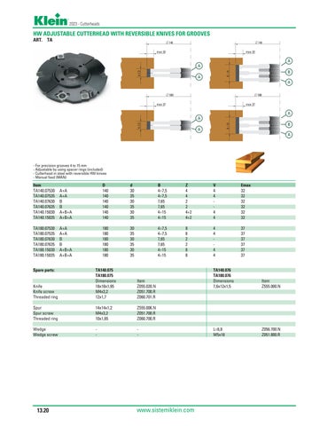 HW ADJUSTABLE CUTTERHEAD WITH REVERSIBLE KNIVES FOR GROOVES ART. TA max 32