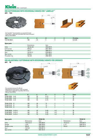 HW ADJUSTABLE CUTTERHEAD WITH REVERSIBLE KNIVES FOR GROOVES ART. TB