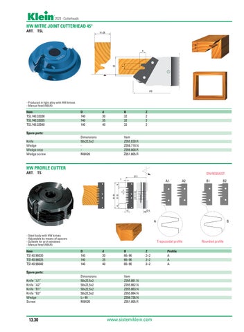 Spare parts: Knife “A1” Knife “A2” Knife “B1” Knife “B2” Wedge Screw