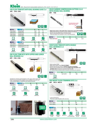 - Suitable for trimming with template on the upper and/or lower side - Klein® trimming bits with straight cut are suitable for smooth and well-finished edges on melamine and veneered panels.