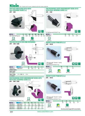 - HW knives with “Kawedur” coating - For CORIAN ® - 11° ball bearing with Delrin® ring 17° ball bearing with Delrin® ring