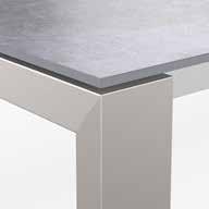 Les châssis des tables des programmes Olympia et Merkur sont en aluminium anodisé argenté dans le programme standard. Moyennant un supplément, elles peuvent être laquées en anthracite ou dans les couleurs RAL.  ZARGEN LACKIERT I CADRE LAQUÉ