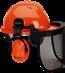 Secured by a head harness and a neck band