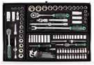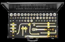 • 3/8” Dr. Sliding T-Handle 250mm, 3/8” Dr. Universal Joint 54mm, 1/4” & 3/8” Drive Ratchet 130mm,