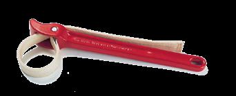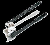 A drop forged electroplated tool with tensioning capability of over 2,400 pounds and built-in cutter. Used to apply Bands and buckles, strapping and Free-end clamps.