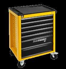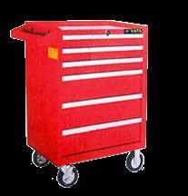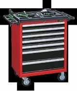 Type: with six telescope drawers, central locking. Large worktop with anti-slip mat. Side-trays for storage of small parts. With rubber tyred castors (one with brake).