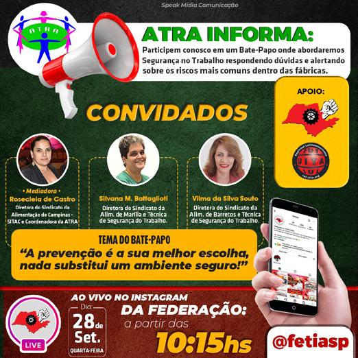 Nosso diretor Jeferson participou de bate-papo virtual promovido pela ATRA, através da nossa Federação. O tema do bate-papo foi “A prevenção é a sua melhor escolha, nada substitui um ambiente seguro”.