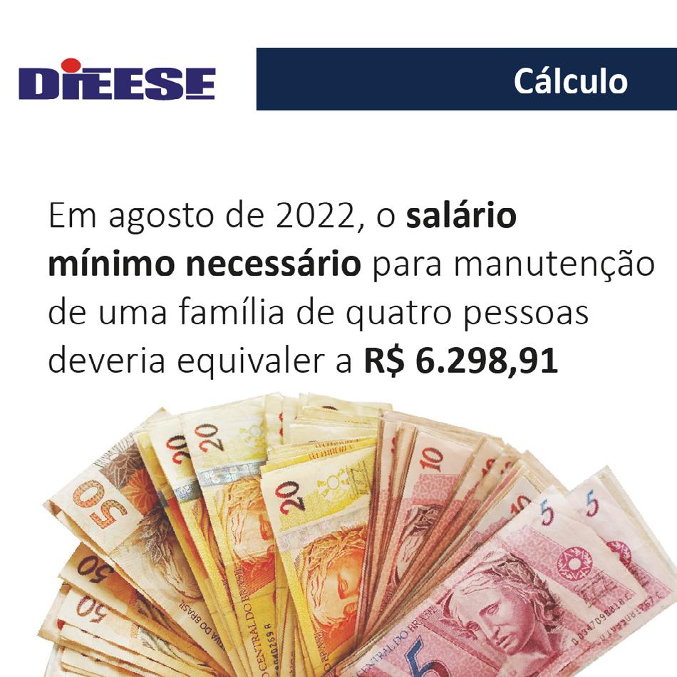Em setembro de 2022, o salário mínimo necessário para manutenção de uma família de quatro pessoas deveria equivaler a R$ 6.306,97