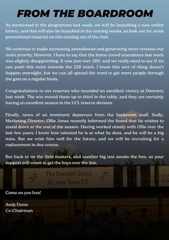 Final Score: Banbury United 2 St Ives Town 1 Half Time 0 - 0