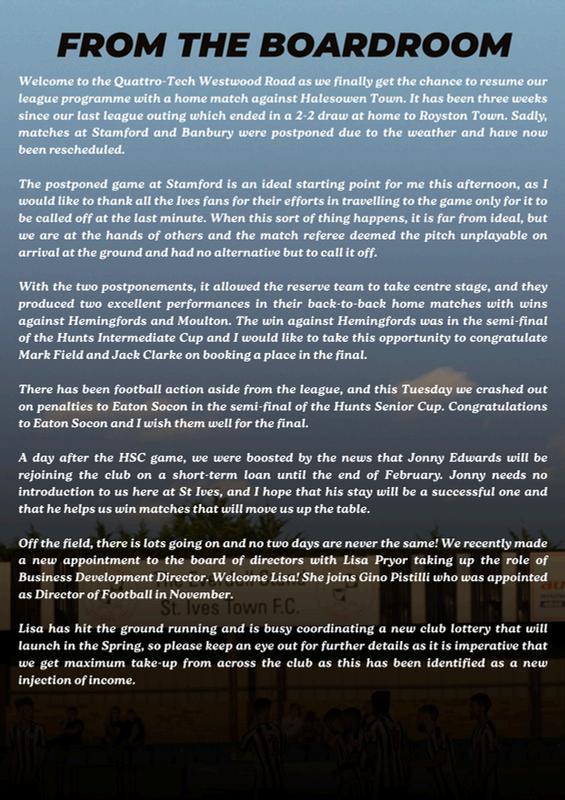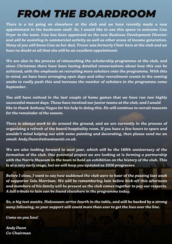 The club was saddened to hear of the recent passing of Ives fan, Iain Morrison. His family have asked for the following tribute to be included in the programme this afternoon. We will be remembering Iain before the game with a minute’s applause.