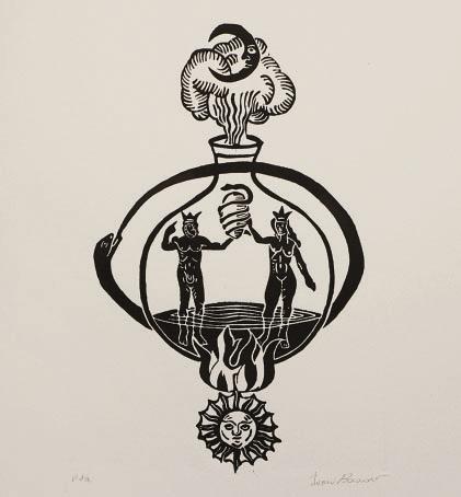Ivan Bossoni, Elisìr, 2022, linoleografia su carta Fabriano Tiepolo, 50x35 cm (opera in mostra).