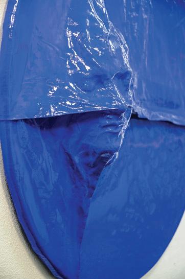 Ivan Bossoni, Personificazione della Luna Alchemica, 2022, estroflessione figurativa ad acrilico blu cobalto e resina, 70x70 cm (opera in mostra).