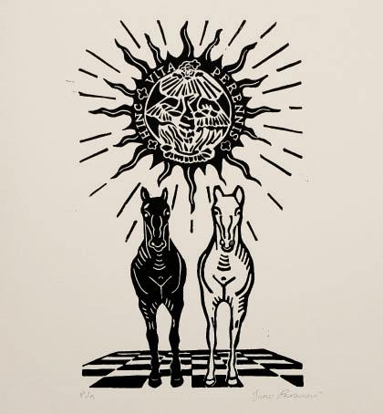 Ivan Bossoni, Hinc Vita Perennis, 2022, linoleografia su carta Fabriano Tiepolo, 50x35 cm (opera in mostra).