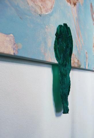 I residui di lattice – un materiale viscido che attira lo sguardo, rimandano al disgusto quanto allo scherzo – risultano essere un documento effettivo dei suoi resti che viene inserito all’interno della composizione, tanto dell’opera (pittorica o scultorea che sia)quanto della cornice, come nel lavoro Se mi apri cosa trovi. Se con la scultura si raggiunge un livello più intimo e profondo, nella pittura di Statica esplorazione del cielo si arriva a toccare l’argomento in maniera giocosa con un pizzico di dimensione eccentrica. Sono opere esplicite, femminili, dove l’organo genitale maschile ha lasciato il suo passaggio, a seguito di un atto sessuale, fatto di gesti incisivi e morbidi.Allo stesso tempo sono opere introspettive e necessitano di un confronto, per questo si è voluto creare un dialogo provocatorio con i dipinti moderni del museo e con le tele di Santambrogio, il cui strumento – il corpo – è il medesimo, eppure utilizzato a fini ben diversi.