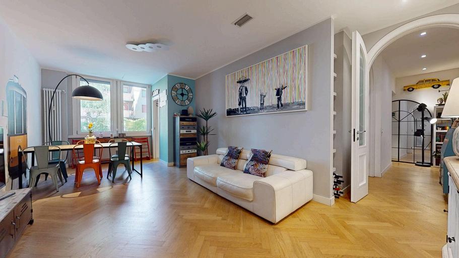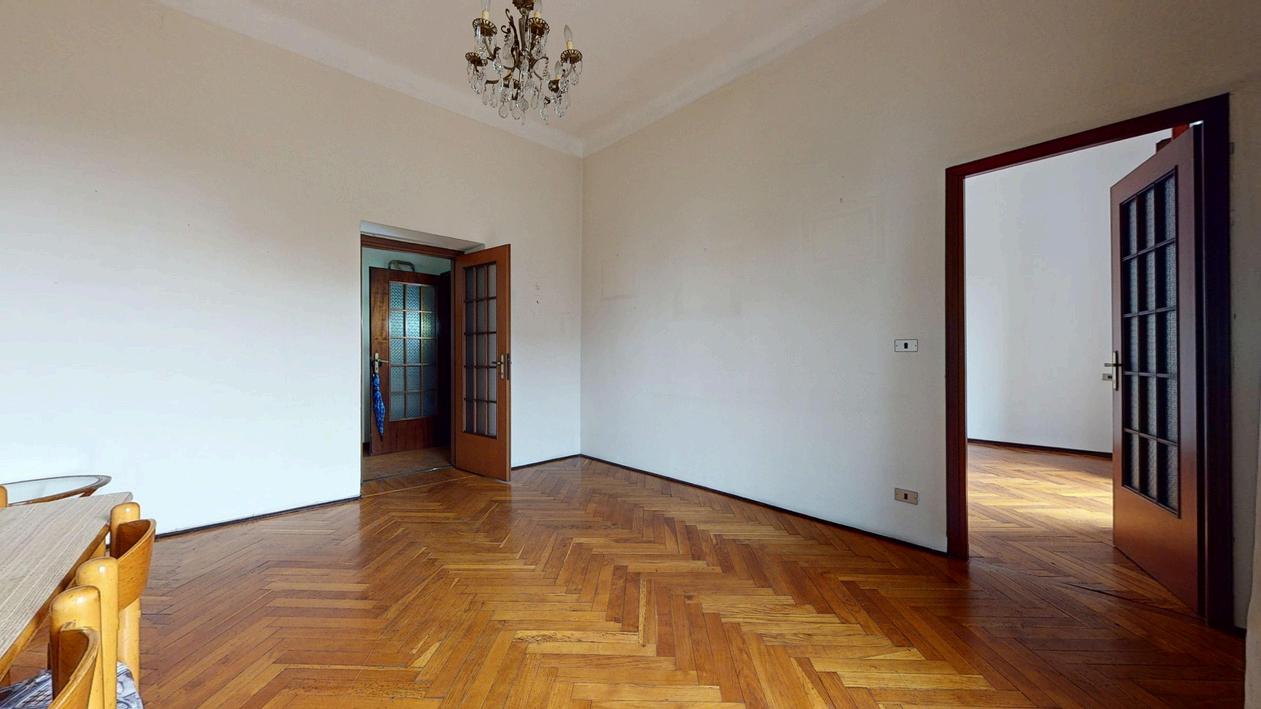 Ubicato all’interno di un signorile palazzo d’epoca con servizio di portineria e ascensore, l’appartamento di 142 mq, posto al terzo piano, offre spazi ampi e confortevoli