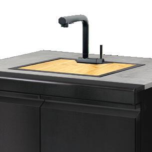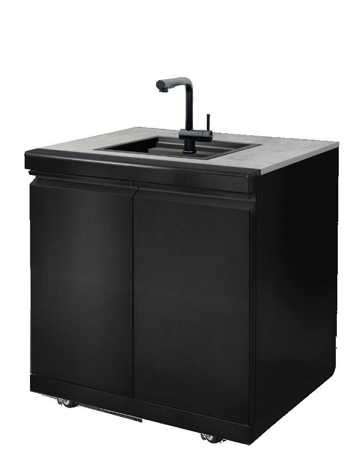 • The new NOVA MK2 Sink, Bin & Storage Module features #304 Graphite stainless steel fascia, doors, and kick plate, a sintered stone top, and black powder-coated cabinet - now with an oversink chopping board to save bench space while prepping.