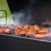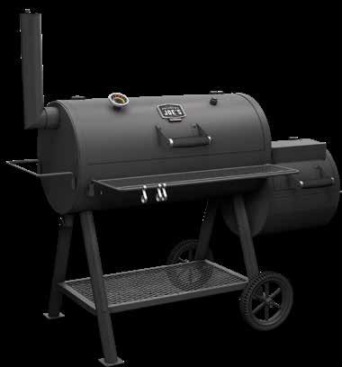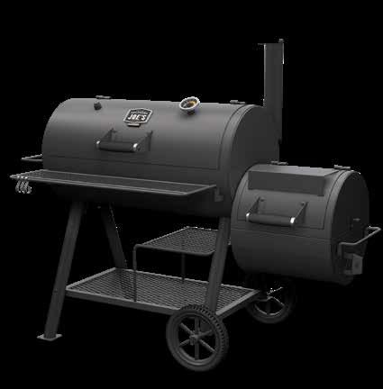 COOKING AREA: Smoke up to 2 pork shoulders or grill 12 burgers on the 48,400 mm² main grate. The 18,120 mm² firebox grate fits 15 wings or 6 burgers.