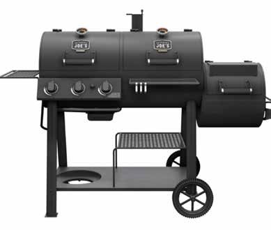 The Oklahoma Joe’s® Canyon Combo Smoker & Grill delivers the real smoke flavour you crave alongside the chargrilled taste you love. Cook a juicy steak low and slow on the smoker, then finish it with a quick reverse-sear on the gas grill—or, if you’re hungry now, just fire up the gas side and start cooking right away. Redesigned to enhance your smoking and grilling experience, the Canyon Combo now features pivoting cool-touch handles, an easy-access ash pan, and rubber treads on the wheels. It also includes tool hooks, a charcoal basket, and a robust staging shelf to make every cookout smoother and more convenient.