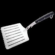 • Scalloped edge allows you to lift food from underneath versus scraping across the bottom