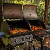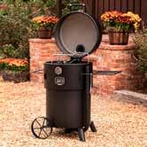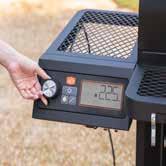 TEMP GAUGES: Dual lid-mounted gauges monitor smoker and grill temps accurately.
