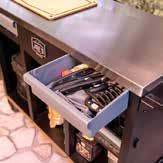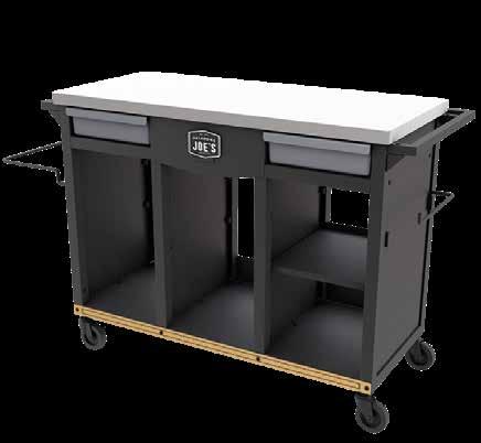 REMOVABLE BINS: Store your tools, accessories & seasonings in large plastic bins under the counter for clean, dry storage within arm’s reach.