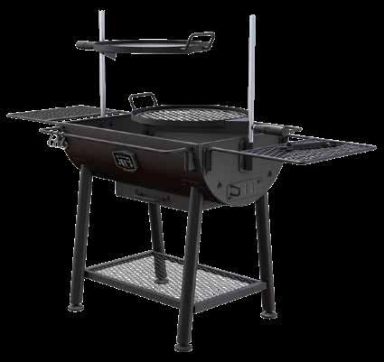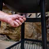DURABLE, ADJUSTABLE GRATES: Two round, heavygauge wire cooking grates with 19-inch stainless-steel elevation poles for multi-height cooking.
