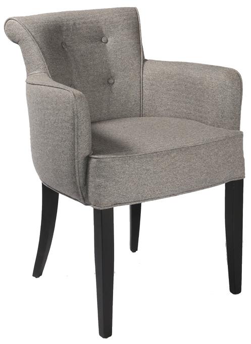 Stol med smakfulle detaljer som en “vipp” på bakrygg og knapper i rygg. Kan også leveres uten knapper. Passer fint sammen med modell SR130.