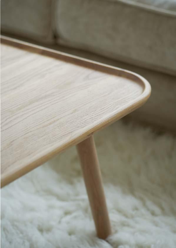 A wood table with a light touch. It can also hold a practical tray for all the things you want to have within reach.