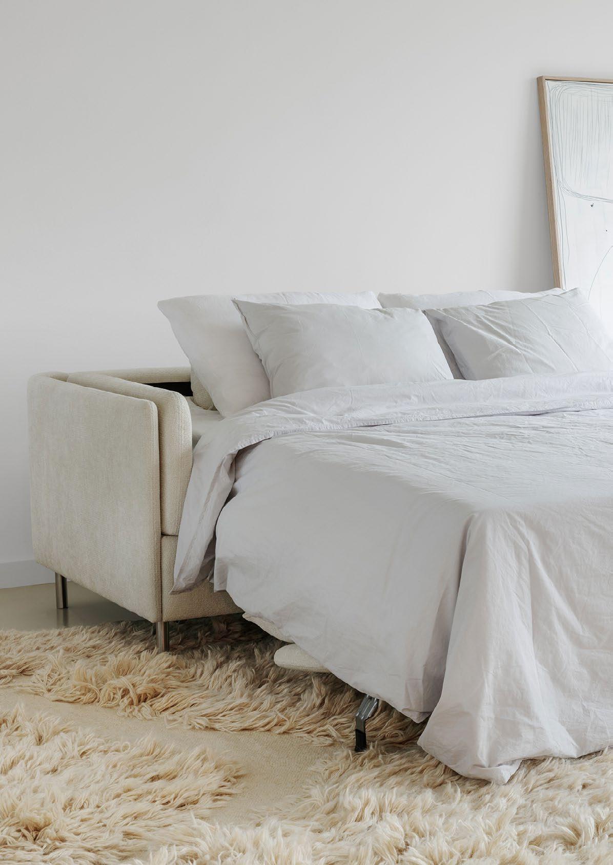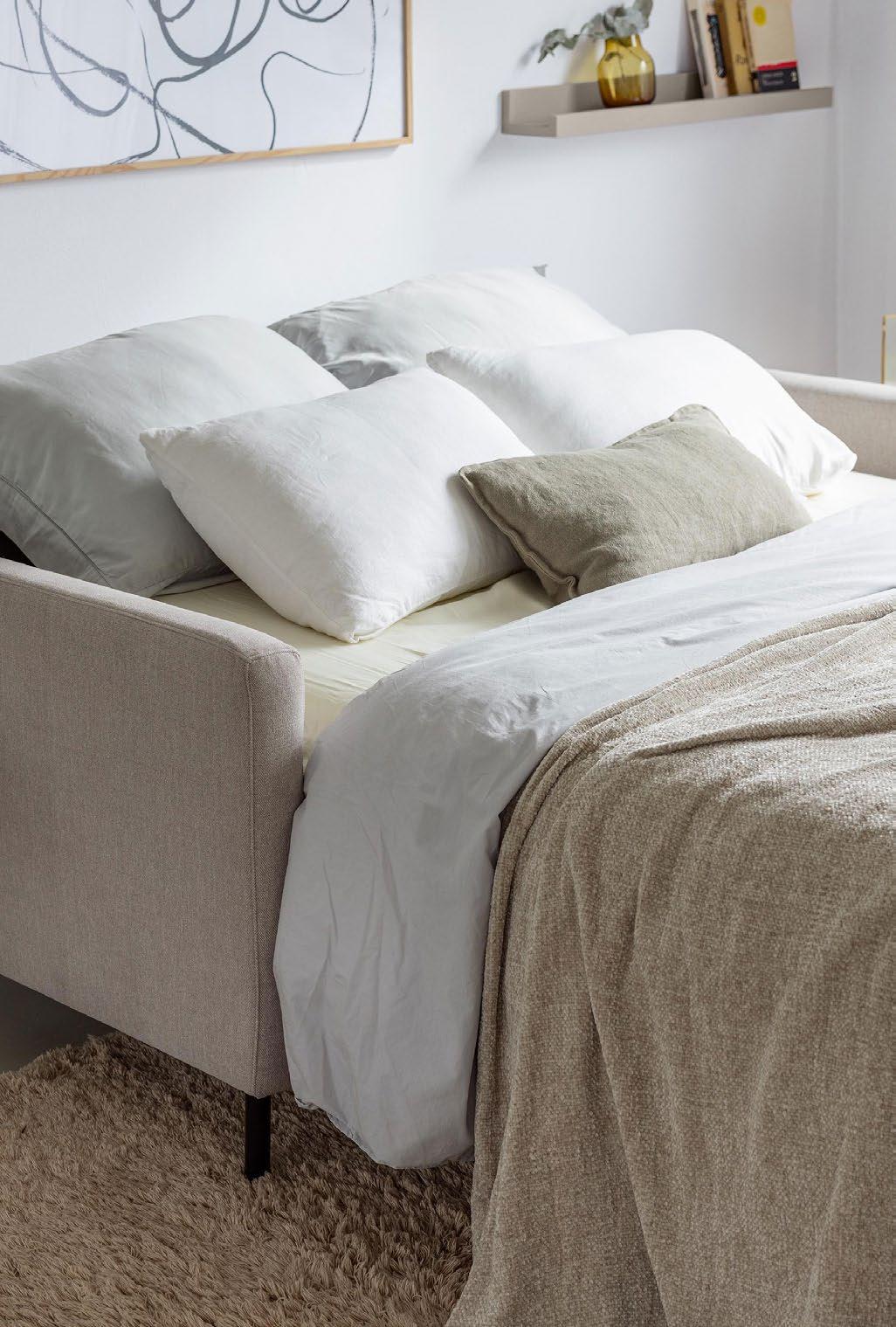 Looks are deceiving. From the outside it looks just like a regular sofa, but inside there’s a generous, comfortable bed with a real mattress just waiting to be released in three simple moves. The perfect solution when you don’t want your guests to leave, or to help you triumph over the challenges of living in a small space.