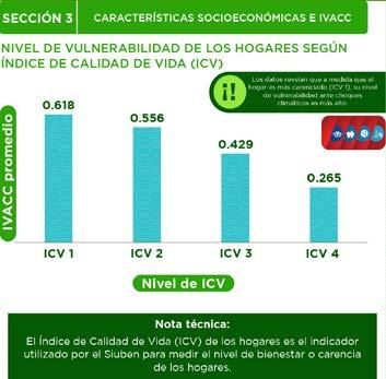 • Lograr una mejor focalización de los recursos sociales: el IVACC, conjuntamente con el Índice de Calidad de Vida (ICV) permiten conocer cuáles son los hogares que, además de ser los de mayor nivel de privaciones socioeconómicas, son también los de mayor vulnerabilidad ante choques climáticos.