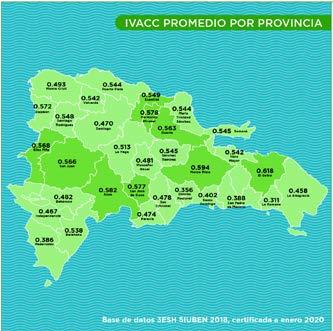 El IVACC es un índice que calcula la probabilidad de que un hogar sea vulnerable ante la ocurrencia de un fenómeno climático como huracanes, tormentas e inundaciones dadas ciertas características socioeconómicas y geográficas del hogar. Puntúa a todos los hogares en la base de datos del Siuben con valores de 0 a 1. Mientras más cercano a 0, menor es la vulnerabilidad.