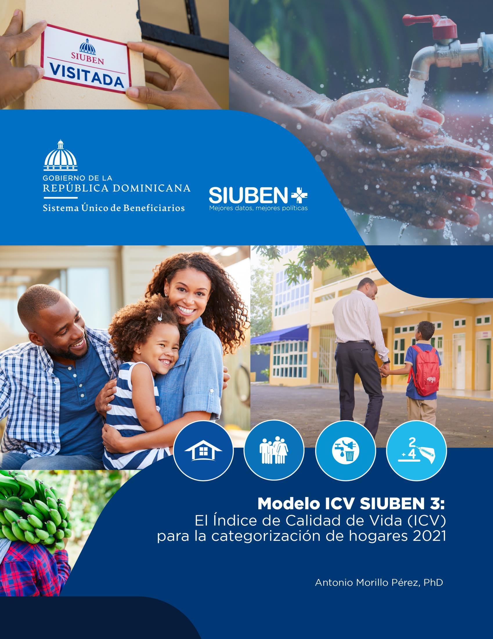 En forma similar a los modelos de ICV ajustados previamente para la República Dominicana, el Modelo ICV SIUBEN 3 está integrado por un conjunto de dimensiones y variables relevantes determinadas en un proceso de análisis multivariado con métodos estadísticos avanzados, acompañadas de sus correspondientes coeficientes de ponderación, los cuales al final se resumen en un sistema aditivo de ponderaciones totales de cada una de las categorías de las variables que conforman el modelo, conforme se explicó en la sección anterior