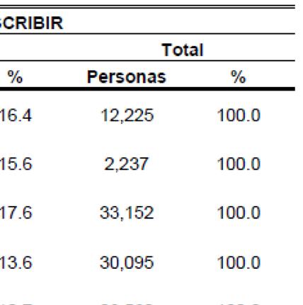 Tabla 6. Distribución de personas de 7 a 65 años por tipo de conocimiento en informática según el sexo
