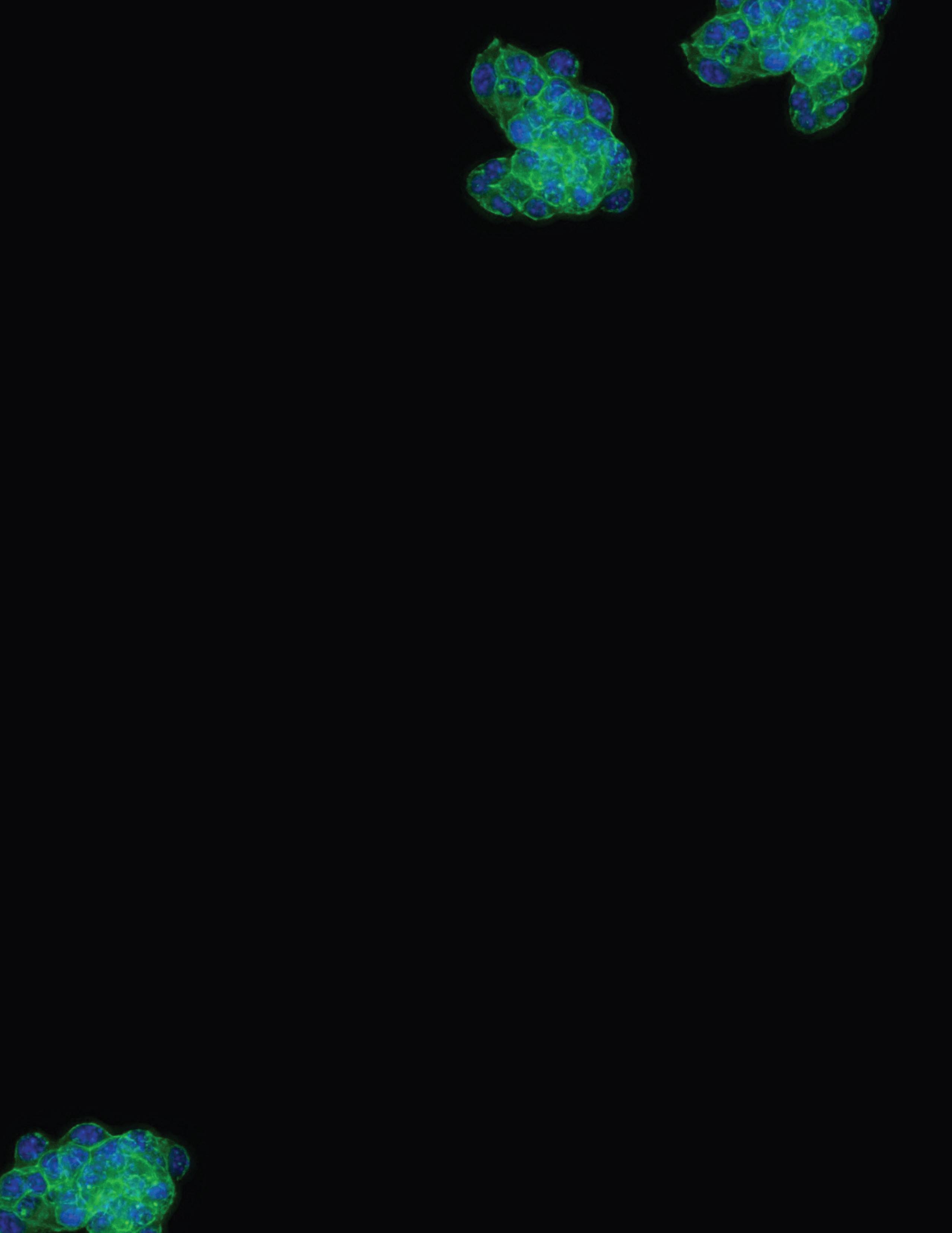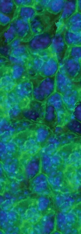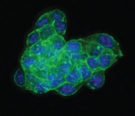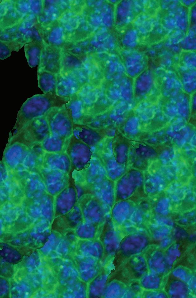 Image: Fluorescence image of a small tumor of cancer cells grown in the research labs in the Department of Pharmaceutical
