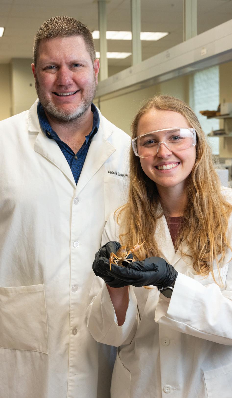 In these pages, you will find stories that span the sciences, humanities, arts, and professional disciplines. You will read about faculty tackling cancer treatment resistance, student-athletes advancing mental health awareness, and researchers exploring how AI impacts civil infrastructure safety. You will learn how a collaborative team is working to customize infant feeding accessories to support new mothers, and how faculty and students are uncovering insights about Jewish identity, queer lives in Nazi Germany, and environmental threats exposed by crawfish.