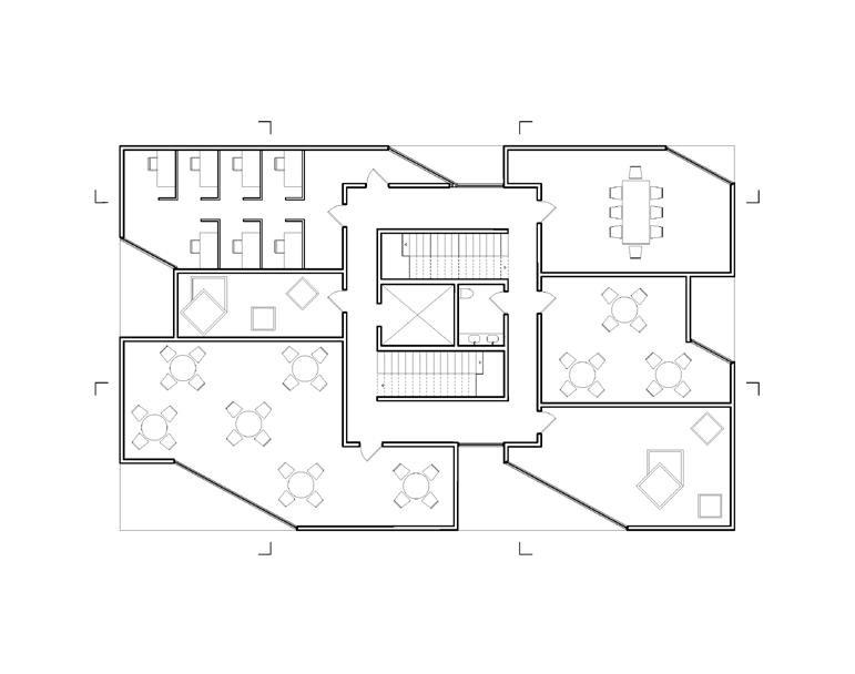 Inspired by a trapezoid shape, the overall design of the building incorporates repetition and circulation as key design principles, contributing to a cohesive and visually engaging architectural language. Interior walls are thoughtfully aligned with the exterior walls, following a diagonal orientation influenced by site forces. This deliberate decision ensures that visitors enjoy a dynamic and immersive experience as they move back and forth between different recreational activities.