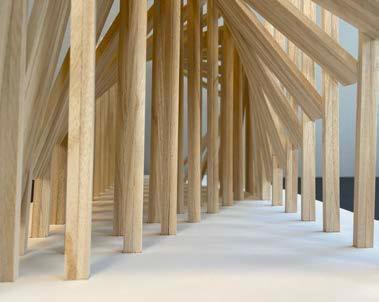 Through experimentation of carving and cutting away the volts, there are both negative and positive spaces, in which the negative voids are where the windows are representing a breadth to the overall figure. The design approach focuses on the vertical logic of making individual figures dissolve from one another that also aggregates from top to bottom. The dome-like vaults and the colonnade legs from the underbellies provide opening and viewing spaces for visitors to walk underneath.