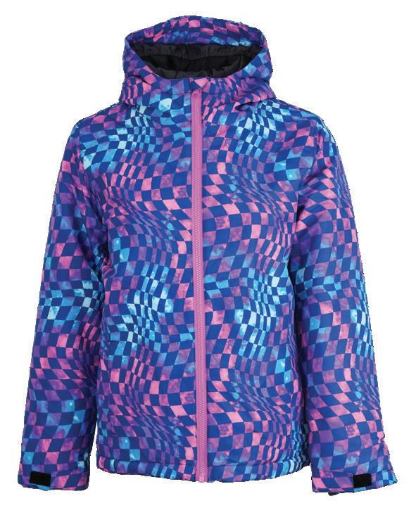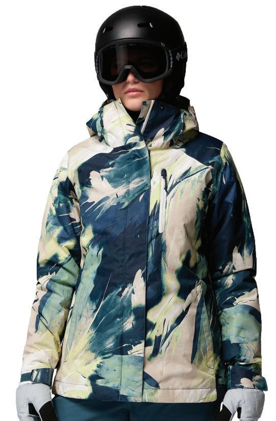 Durable Water Repellency (DWR) treatment, PrimaLoft® 170g insulation. Soft chin guard, and a powder skirt.