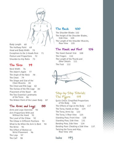 Quick Check: Simplified Proportions of the Body 116 The Effects of Age on the Body 117 The Torso, Hands on Hips 119 The Torso, Arms Up 122 The Torso, 3â4 Rear View 125 Standing Pose, Front View 128 Standing Pose, Side View 131 Bending Pose, Side View 134 Bending Pose: Cheating a Side View 137 Twisting the Torso and Hips, Rear View 140