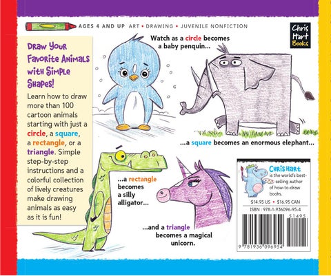 Learn how to draw more than 100 cartoon animals starting with just a circle, a square, a rectangle, or a triangle. Simple step-by-step instructions and a colorful collection of lively creatures make drawing animals as easy as it is fun!